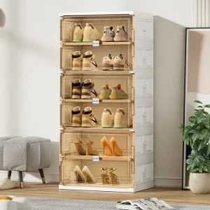 Meuble à Chaussures Double Pliable en Plastique 6 Portes