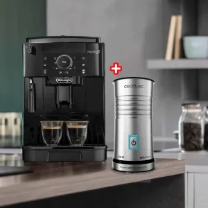 Pack Expresso Broyeur Café Magnifica S Black Delonghi (ECAM12.121.B) + Mousseur à Lait Électrique 115ml sans Fil Power Latte Spume 4000 Cecotec (1519)