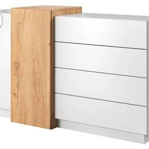 Commode 4 Tiroirs 1 Porte (Collection Arco Bialy Laqué Blanc/ Chêne Noble)