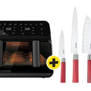 Pack Friteuse sans Huile 9L Cecofry Advance 9000 Window Cecotec (4986) + Set de 4 Couteaux Professionnels en Céramique Style Santoku Cecotec (1003)