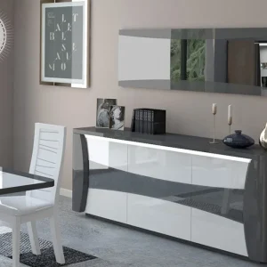 Bahut Bas 4 Portes avec Miroir et LED (Collection Tiago Laqué)