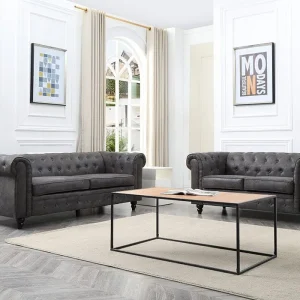 Canapé 2 Places Vintage Gris Salon Chesterfield