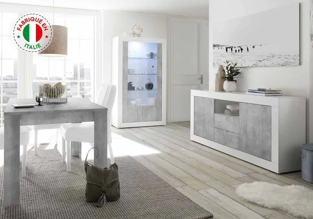 Argentier 2 Portes LED (Collection Amina Blanc/Béton)