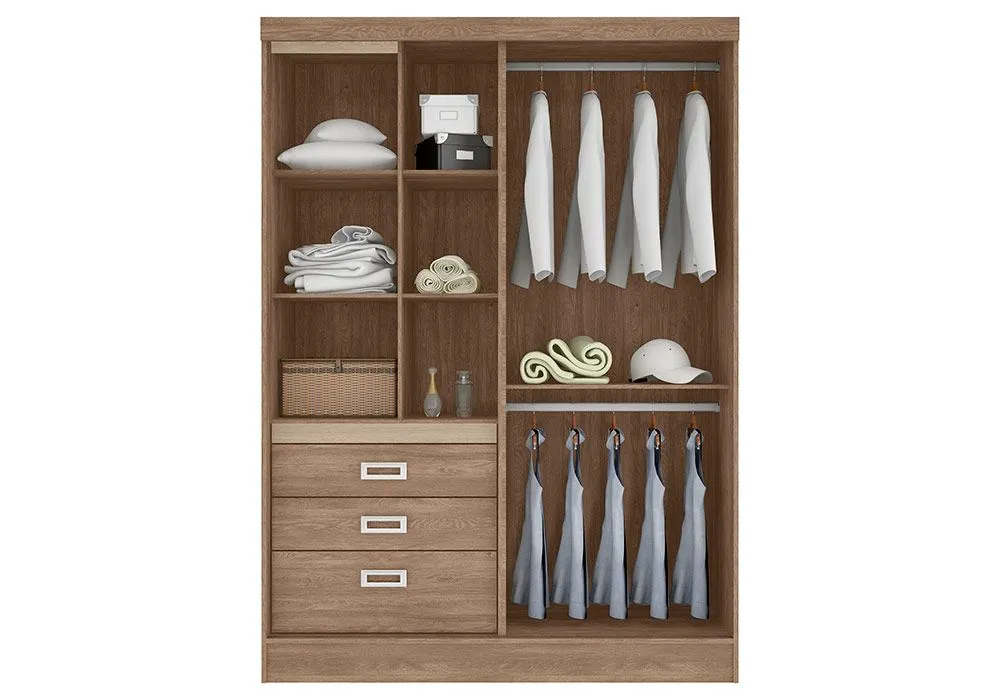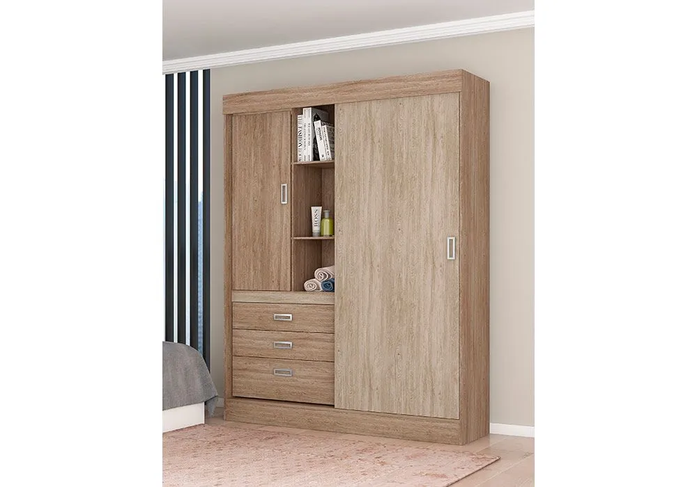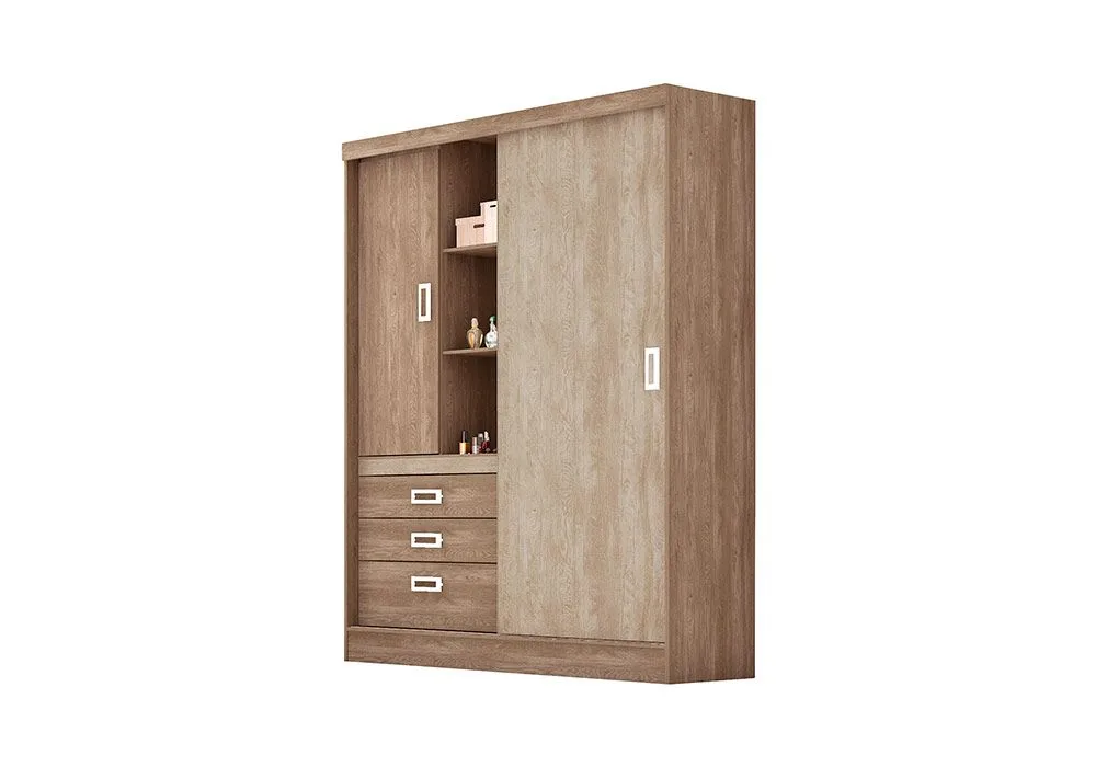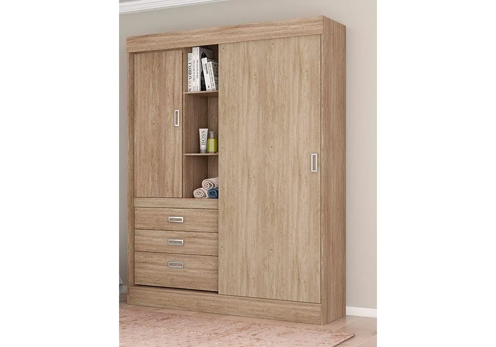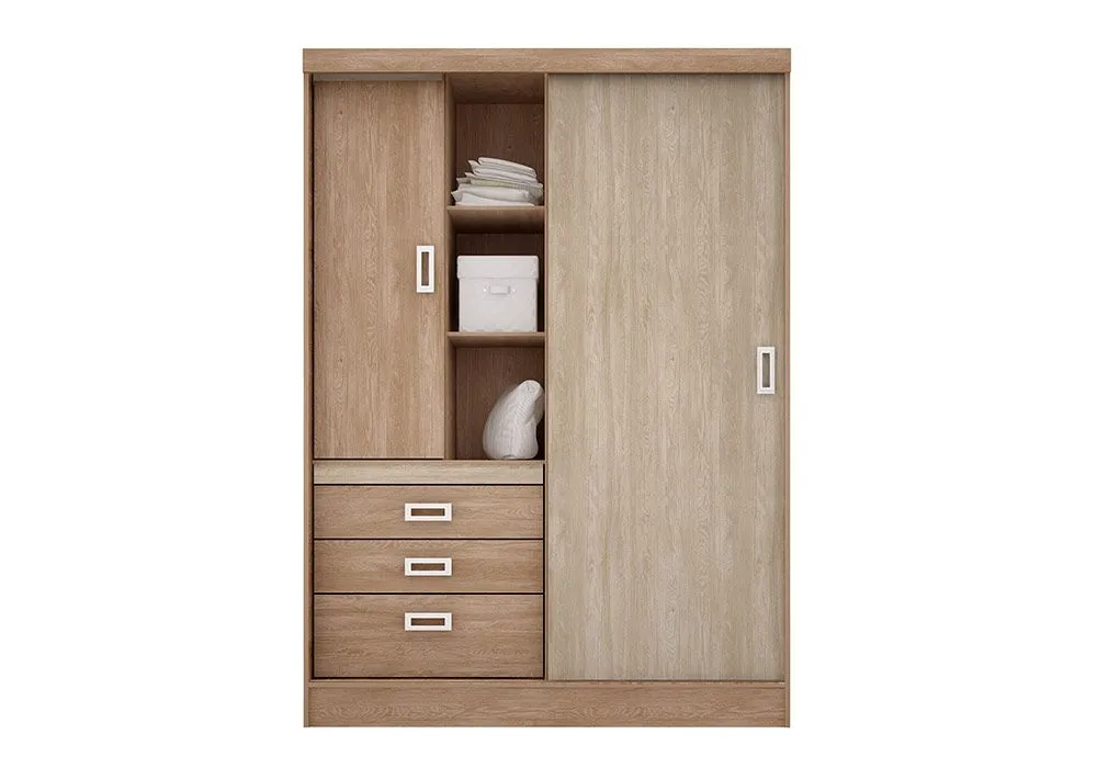 L’armoire 2 portes offre un espace de rangement appréciable avec 2 penderies, des niches et 3 tiroirs inférieurs. Son coloris walnut vanille apportera une touche de chaleur et de clarté à votre intérieur. Multifonctionnelle, elle trouvera sa place aussi bien dans un bureau ou une chambre.