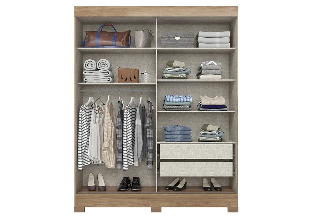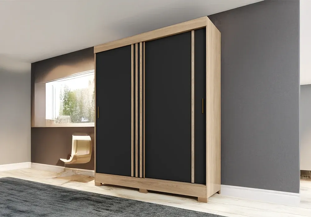 Transformez votre espace de rangement avec cette armoire à 2 portes coulissantes, un meuble à la fois pratique et élégant qui s’intègre parfaitement dans votre chambre à coucher.