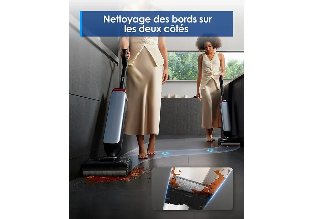Dites adieu aux tâches tenaces et aux allers-retours inutiles. Ce modèle aspire les poussières, les poils et les liquides tout en lavant vos sols durs, même dans les recoins.