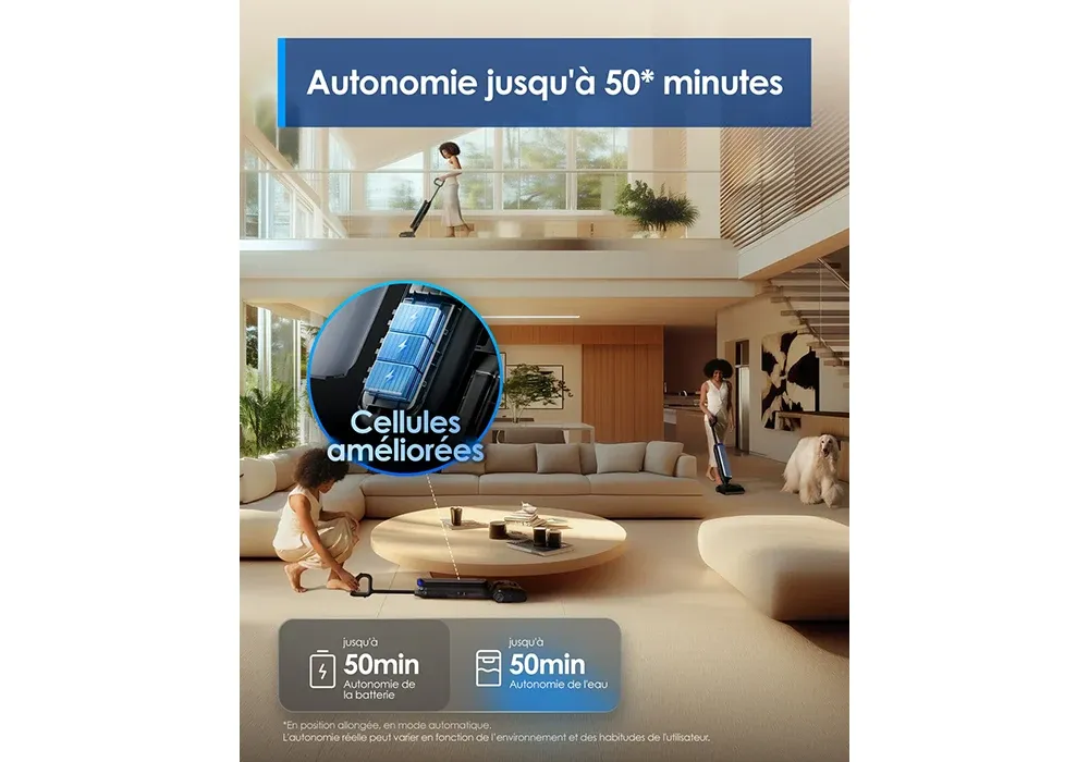 Pensé pour les foyers exigeants, ce modèle haut de gamme aspire et lave vos sols en un seul passage, tout en se nettoyant automatiquement après chaque utilisation. Grâce à son système FlashDry à 85°C, ses serpillières restent sèches, propres et prêtes à l’emploi à tout moment. Un gain de temps et d’hygiène incomparable.