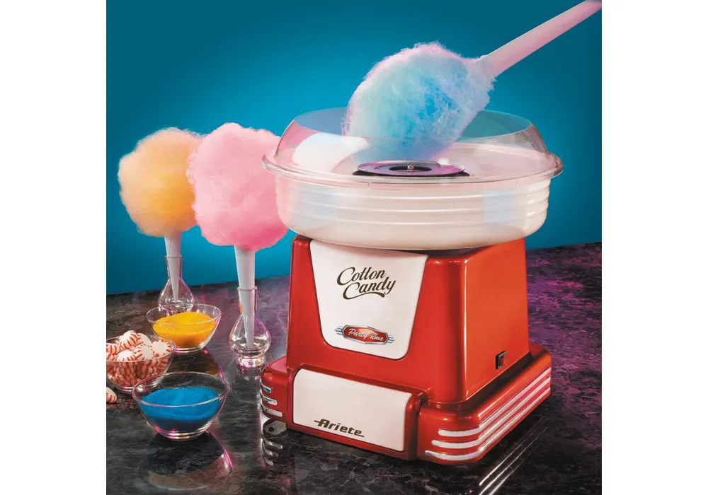 La machine Barbe à Papa Ariete Party Time de style rétro des années 50 fabrique une barbe à papa comme au parc d’attractions ! Il fonctionne à la fois avec du sucre cristallisé et des bonbons durs pour obtenir immédiatement un cône de barbe à papa avec de nombreuses saveurs. Parfait pour apporter de la joie à la maison, divertir les enfants et faire en sorte que les adultes se sentent à nouveau petits !