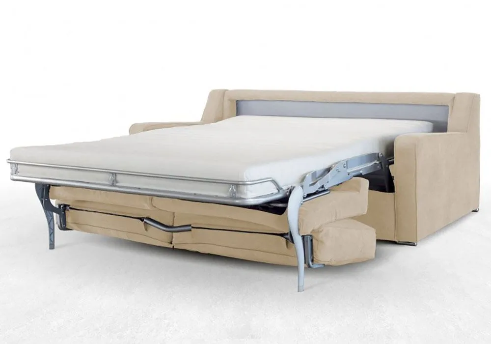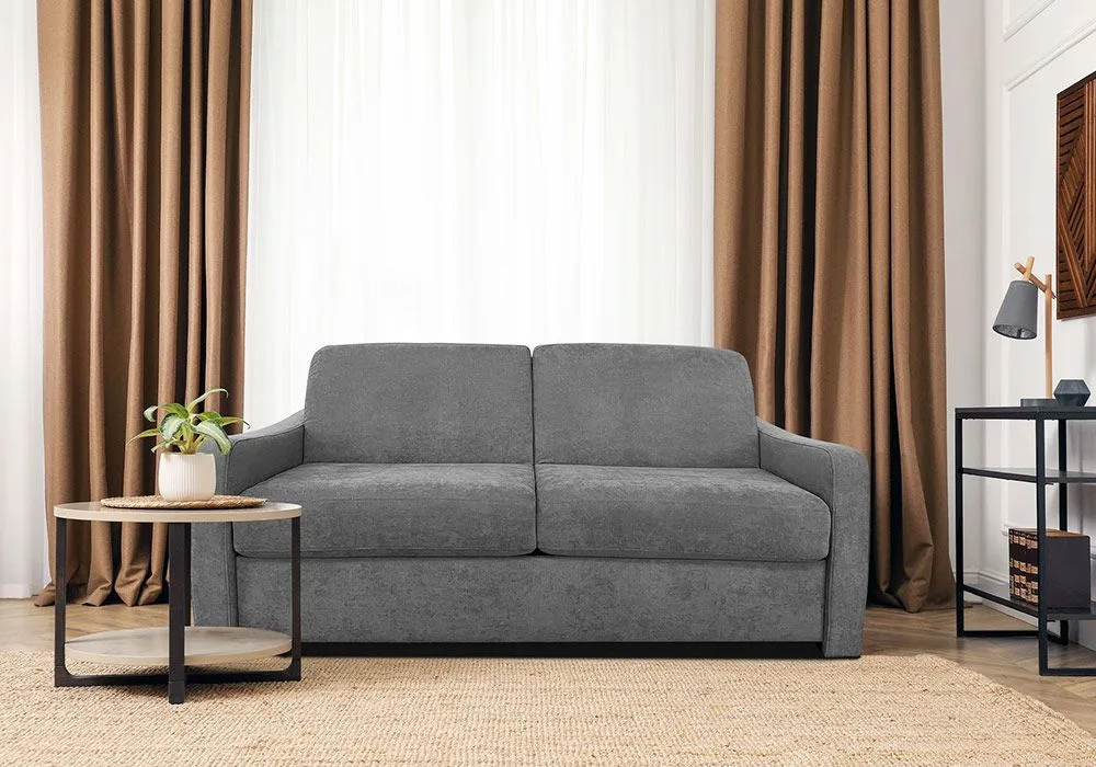 Dimension couchage : 140x190cm. Matelas hauteur 12cm. Porte coussins à l’intérieur du dossier. Structure en aggloméré épaisseur 18mm Bandes de hêtre/sapin. Matelas en mousse de polyuréthane densité 28 kg haute densité indéformable. Tissu microfibre avec traitement anti bactérien. Suspension dossier en sangle élastique tressée.