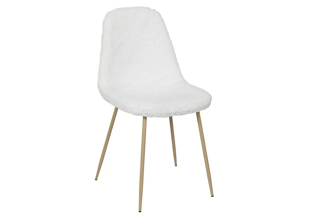 La chaise Aurea imitation fourrure blanche avec sa ligne enveloppante, revêtue de cette douce fausse fourrure en fait une chaise particulièrement confortable. Côté style, sa ligne très contemporaine, posée sur ses fins pieds en métal doré, lui donne un style très actuel.