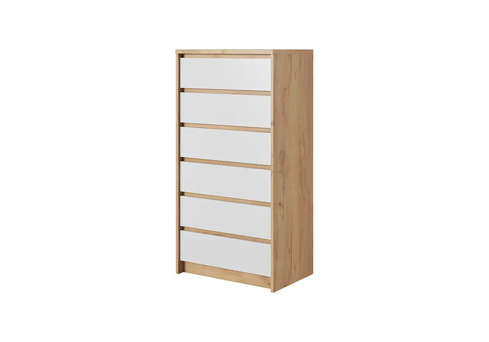 Cette commode au style sobre et épuré de la collection Xelo combine la couleur chêne artisanal doré et le blanc pour un effet chic et lumineux.