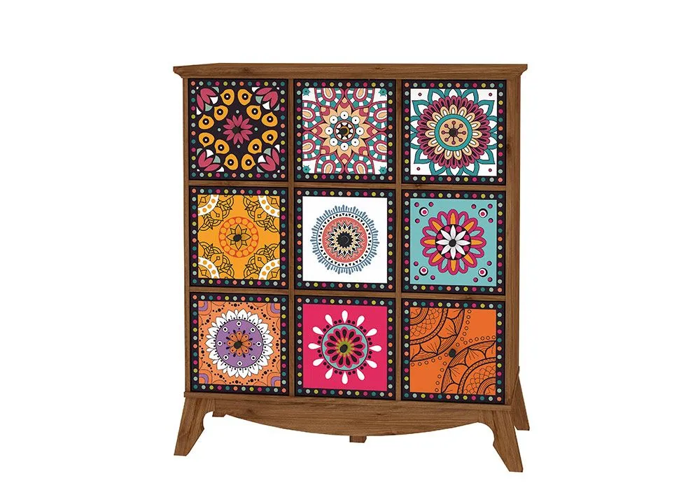Avec son design ethnique, le meuble de rangement Keta à l’esprit bohème ne manquera de sublimer votre intérieur. Dans un séjour, une entrée ou une chambre, il propose une capacité de rangement optimale et organisée grâce à ses 9 tiroirs distincts. Ses couleurs et ses motifs psychédéliques apporteront un style chaleureux et ensoleillé à votre intérieur.
