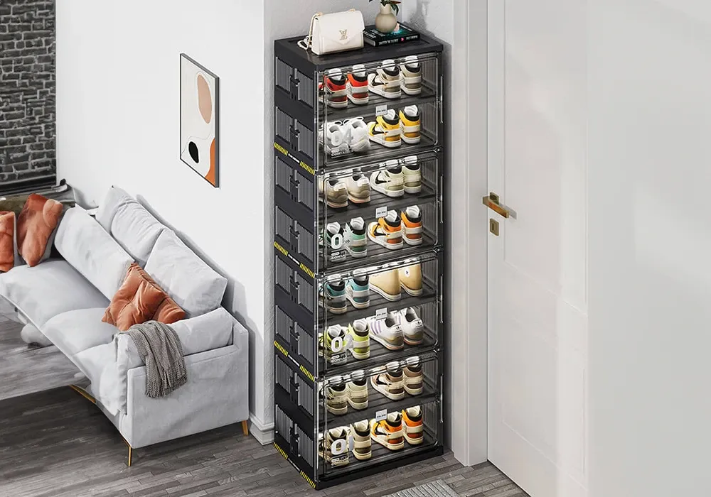 Les boîtes transparentes vous permettent de vite repérer la paire de chaussures. Grâce à la porte frontale, les chaussures sont facilement accessibles