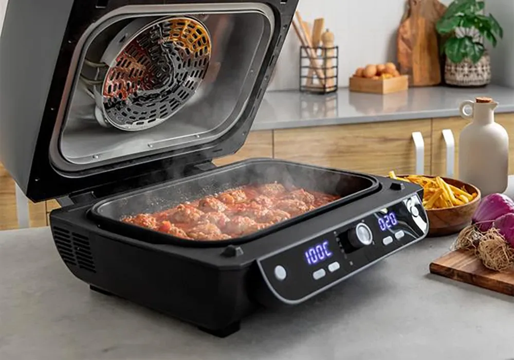 - 9 modes de cuisson : frire, griller, rôtir, cuire au four, cuire à la vapeur, ragoût, déshydrater, décongeler et réchauffer