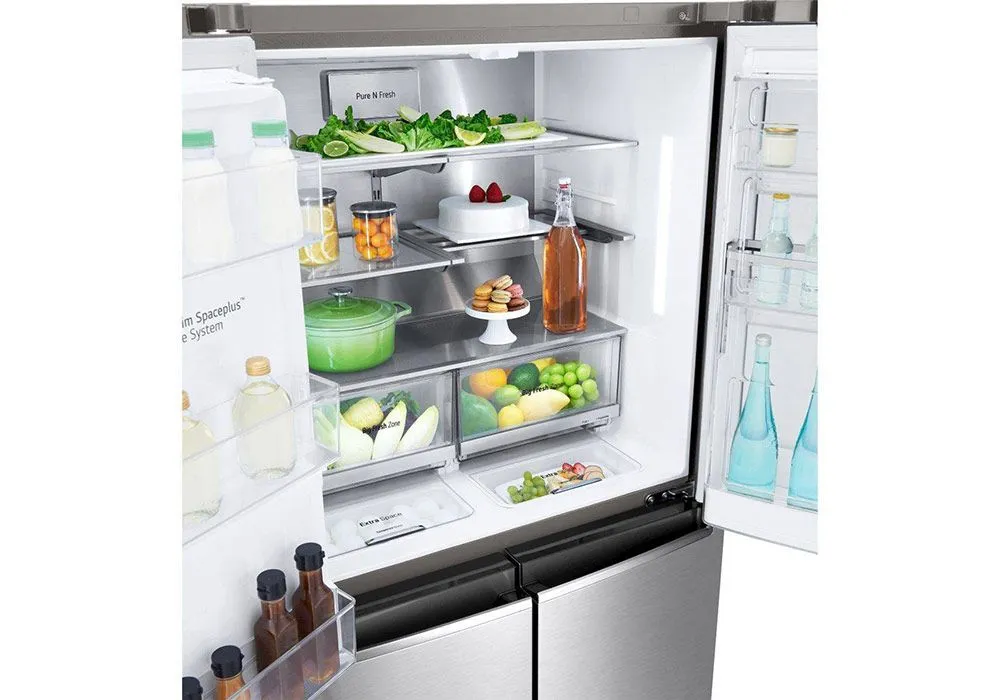 Ce réfrigérateur-congélateur multi-portes est doté du froid ventilé. Ce système produit un air froid et sec qui circule en permanence dans l’appareil. Cela garantit une absence totale de givre, facilite l’entretien, favorise une température uniforme dans tout l’appareil et permet de ranger n’importe quel aliment sur n’importe quelle clayette.