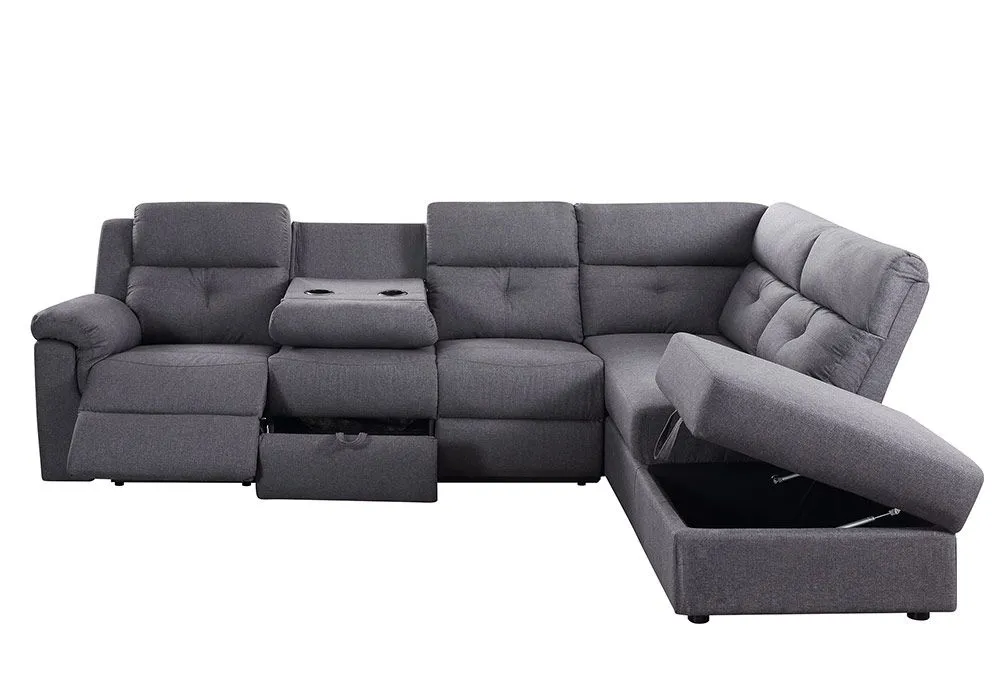 Le canapé d’angle Albert en tissu gris avec 1 relax manuel se fera une place de choix dans votre salon. Il vous séduira par son look actuel et cosy grâce à son assise confortable qui vous accueillera avec générosité. Son coloris lui permettra de s’accorder facilement avec la décoration de votre intérieur.