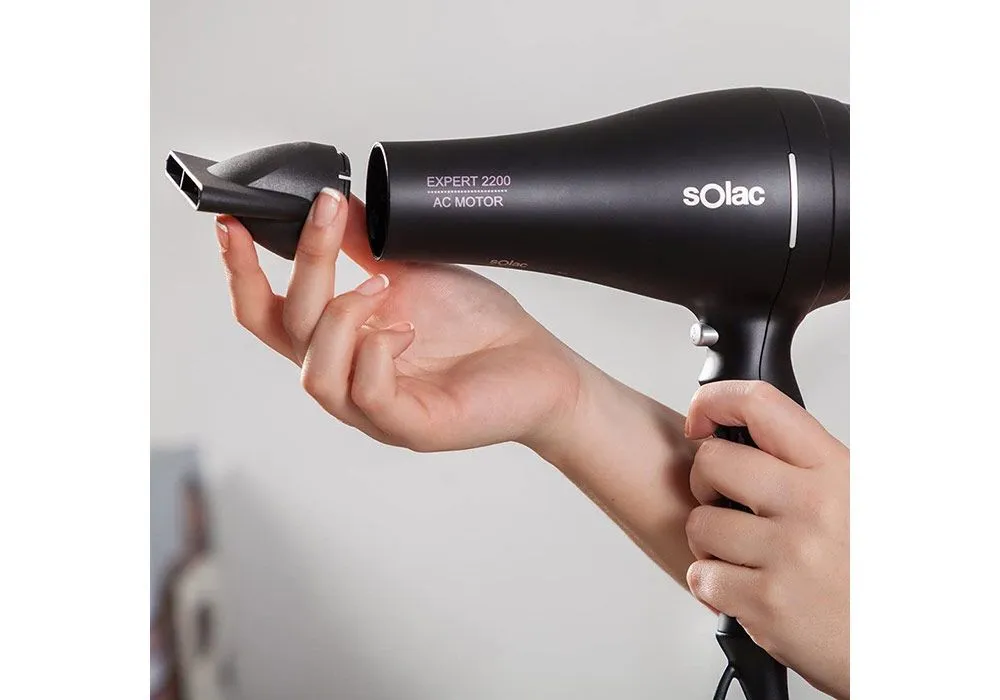 Le sèche-cheveux expert Solac est équipé d’un moteur professionnel AC de 2200W , d’un concentrateur d’air de 7mm et d’un diffuseur. Avec 2 niveaux de puissance et 3 niveaux de température. Il dispose également d’un filtre amovible, d’un anneau de suspension et d’un thermostat de sécurité.