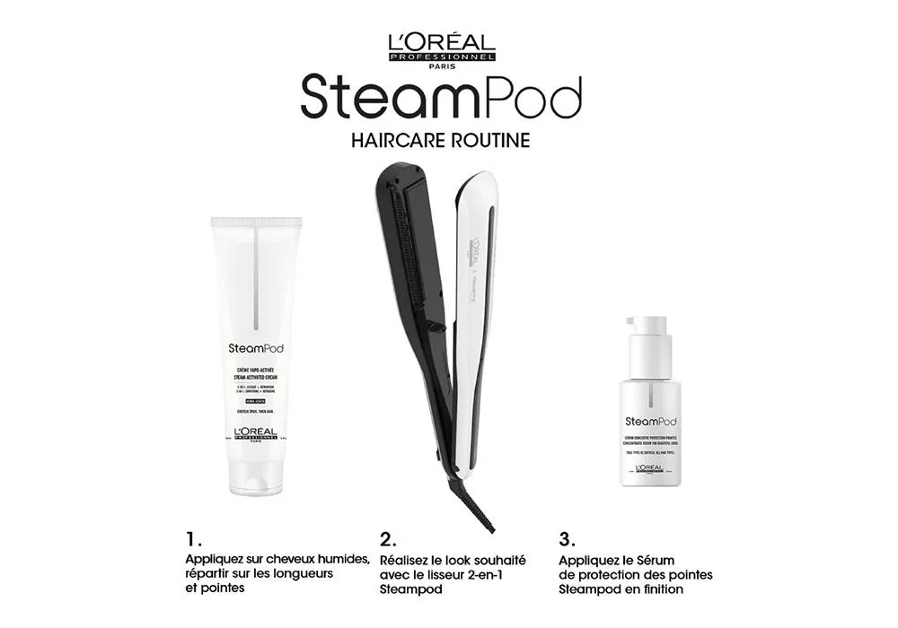 Soin vapo-activé à utiliser avec le Steampod pour un lissage optimal et un mouvement souple. Régénère la fibre sans l’alourdir.