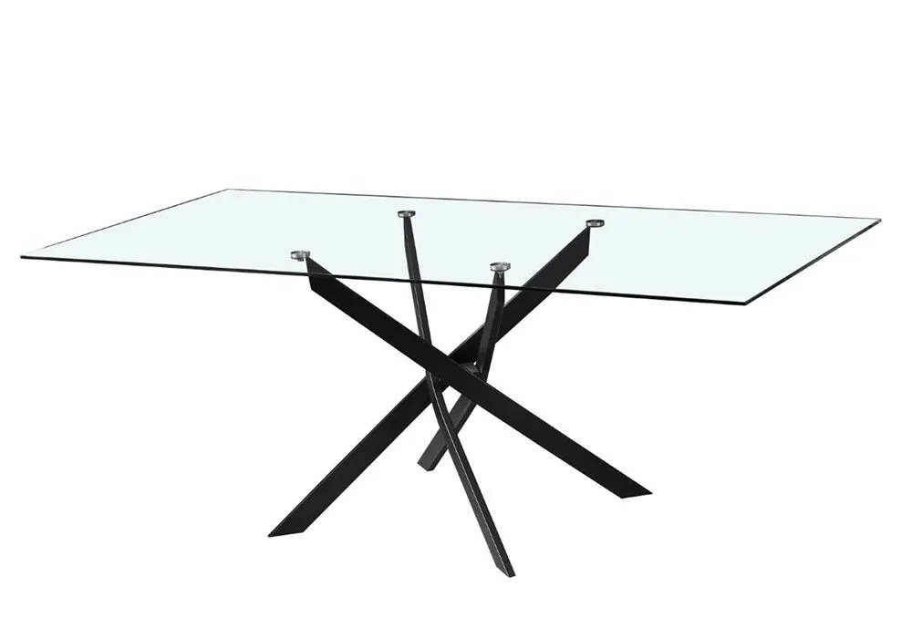 Structure de la table en métal coloris noir, vitre trempée 10mm.