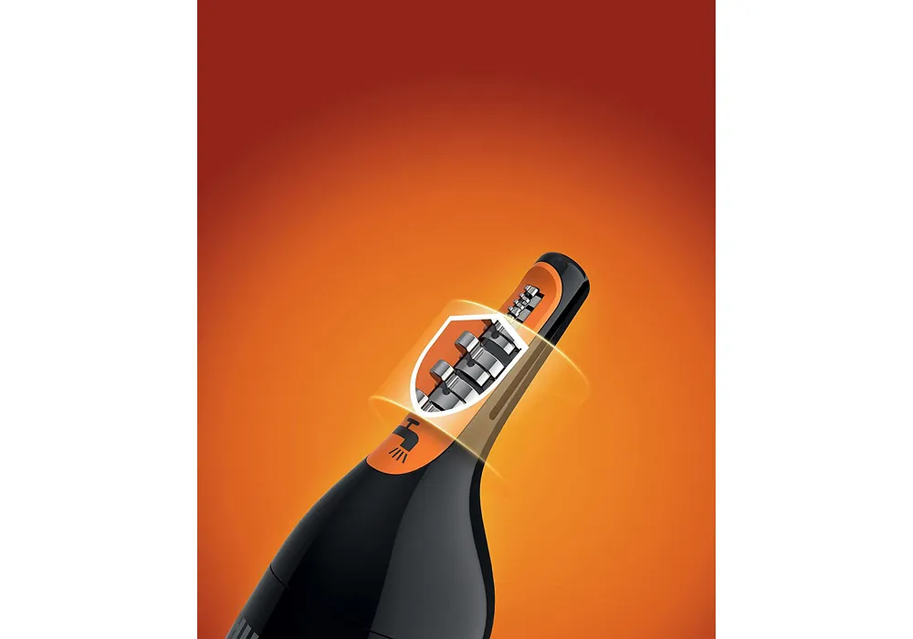 La tondeuse nez-oreilles Philips a été conçue avec un angle idéal pour atteindre facilement les poils à l’intérieur des oreilles et du nez. Ainsi, vous êtes sûr que tous les poils indésirables seront coupés efficacement.