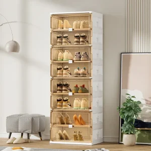 Meuble à Chaussures Pliable en Plastique 4 Portes