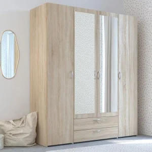 Armoire 4 Portes avec Miroir et 2 Tiroirs (Collection Catherine)