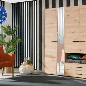 Armoire 4 Portes / 2 Tiroirs + Miroir (Collection Trio)