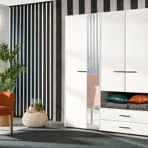 Armoire 4 Portes avec Miroir (Collection Mia)