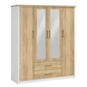 Armoire 4 Portes 2 Tiroirs avec Miroir (Collection Rimini)