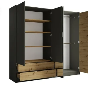 Armoire 4 Portes avec 2 Tiroirs sans LED (Collection Arco Artisan Graphite)