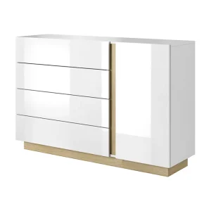 Commode 4 Tiroirs 1 Porte (Collection Arco Bialy Laqué Blanc/ Chêne Noble)