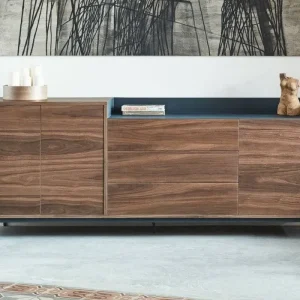 Buffet Bas 3 Portes 3 Tiroirs Valley Noyer/Bleu Foncé