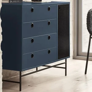 Commode 1 Porte 4 Tiroirs Punto Noir Bleu Gris