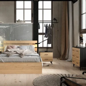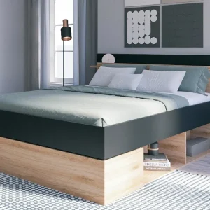 Lit 160x200cm Chêne /Noir avec 2 Tiroirs (Collection Maden)