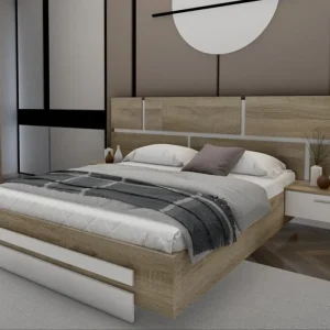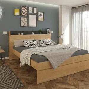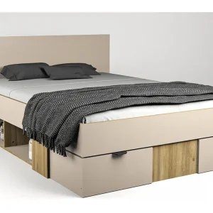 Lit 160x200cm Taupe Vision/Chêne avec 2 Tiroirs (Collection Maden)