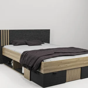 Lit 160x200cm Chêne/Noir avec 4 Tiroirs (Collection Albo)