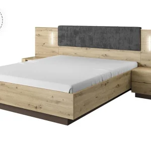 Lit 160x200cm + 2 Chevets avec LED (Collection Arco Artisan Graphite)