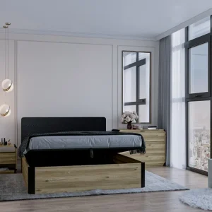 Lit Coffre 140x190cm Chêne / Noir Hypnos