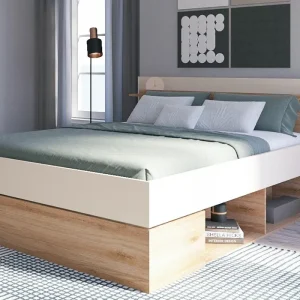 Lit 160x200cm Taupe Vision/Chêne avec 4 Tiroirs (Collection Albo)