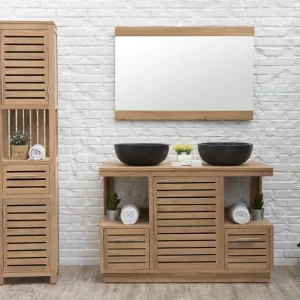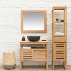 Meuble Bas de Salle de Bains Teck Slat 80cm (Vendu sans Vasque)