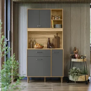 Buffet de Cuisine 4 Portes 1 Tiroir Evora Rustique/Gris Erva Doce