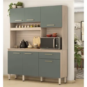 Buffet de Cuisine 6 Portes 1 Tiroir Evora Rustique/Gris Erva Doce