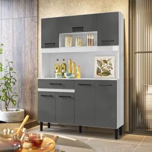 Buffet de Cuisine 6 Portes avec 1 Tiroir Gris Genova