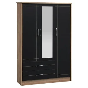 Armoire 3 Portes 2 Tiroirs avec Miroir (Collection Porto)