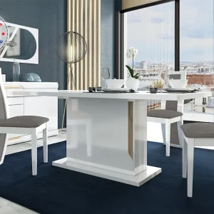 Table à Manger avec 1 Allonge (Collection Dayana Blanc/Chêne Blond)