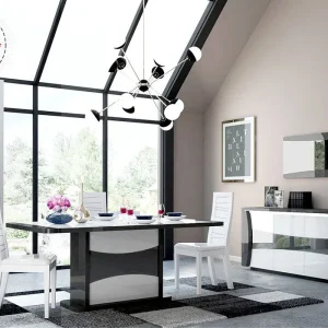 Table à Manger avec 1 Allonge (Collection Tiago Noir/Blanc)