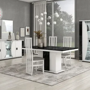 Table à Manger Fixe (Collection Nevada Blanc/Marbre Noir)