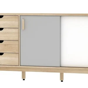 Bahut Bas 2 Portes Coulissantes 4 Tiroirs (Collection Isy)