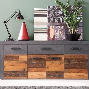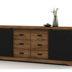 Bahut Bas 2 Portes Coulissantes 6 Tiroirs (Collection Industrielle Nevada)