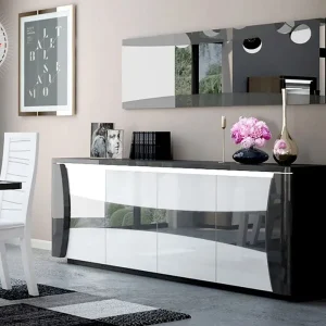 Bahut Bas 4 Portes avec Miroir et LED (Collection Tiago Laqué)
